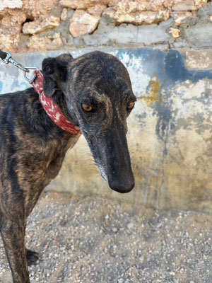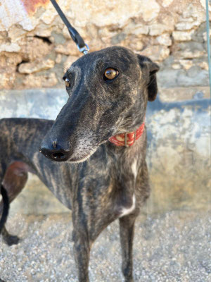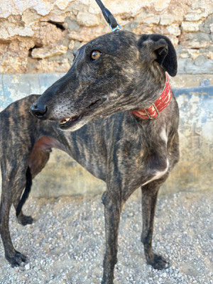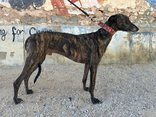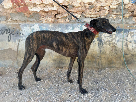 Lawrence, kam damals mit 16 anderen Galgos ins Tierheim. Er war in einem sehr schlecht Zustand, hatte ein großes Loch im Hals; ihm wurde der Chip rausgeschnitten. Als er ankam, hatte er große Angst. Jetzt ist es besser, noch ein wenig Angst. Trotzdem wird er nur in erfahrene Hände vermittelt. Lawrence ist sehr gut mit anderen Hunden. Geht super an der Leine.